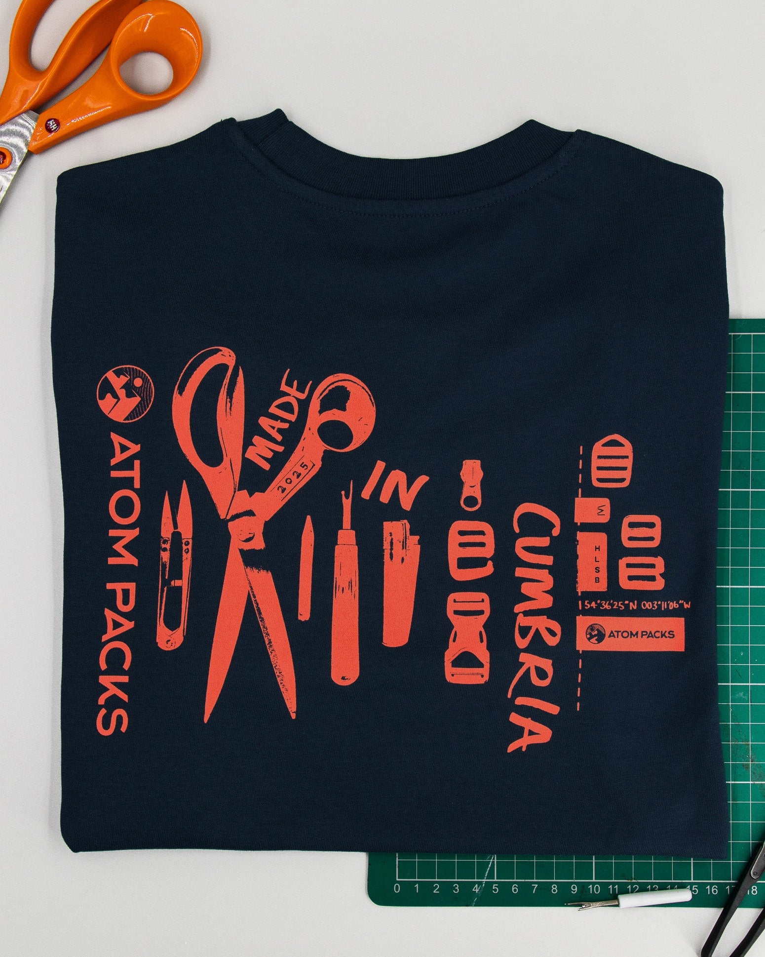 This one, featuring a screen print designed by our very own Eleanor Taylor, was inspired by the hand tools and components that our sewing team use each day when making your backpacks, right here in Cumbria.