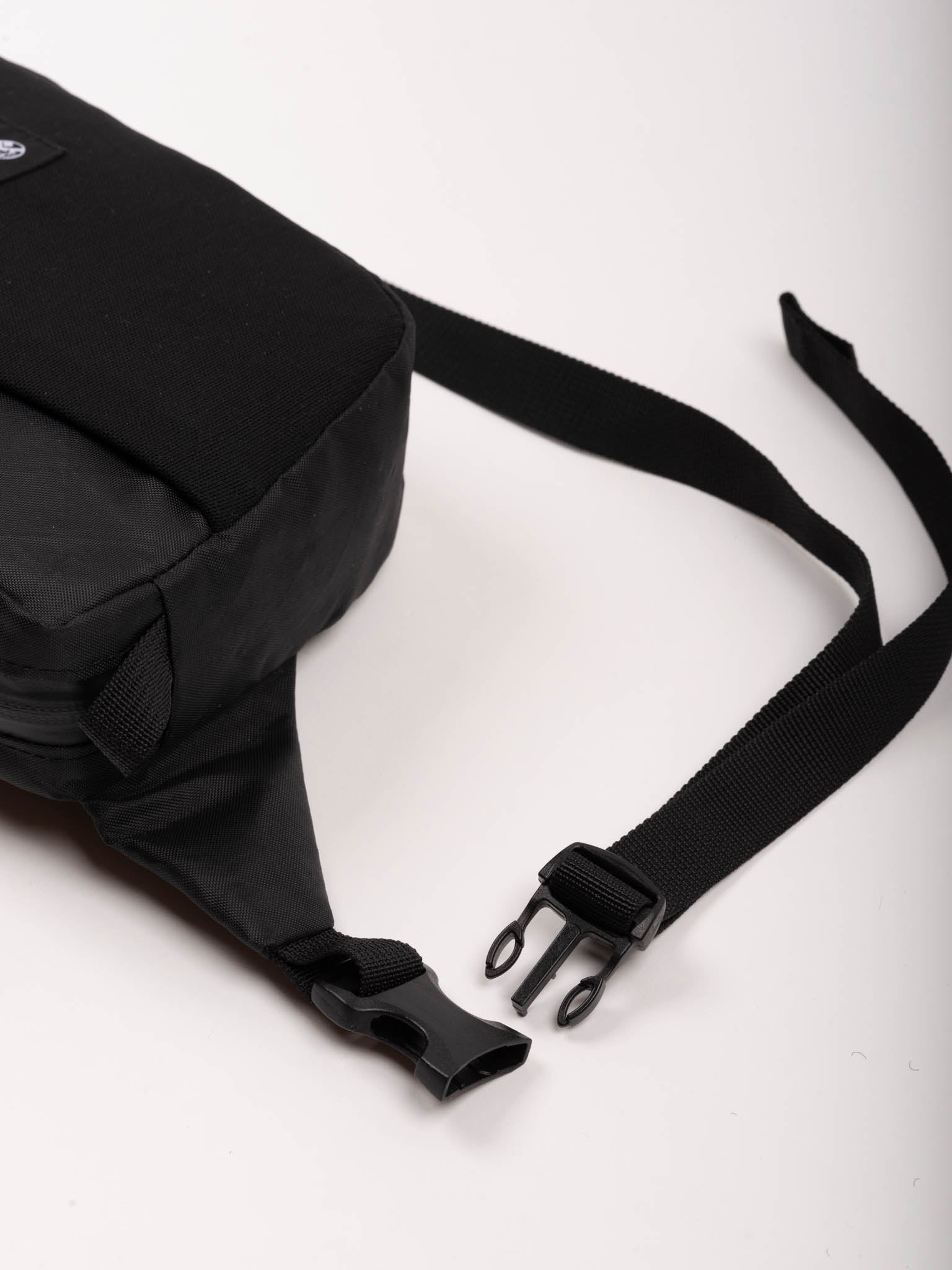 The 20mm soft feel nylon webbing waist strap secures to a side release buckle on the wearer's right-hand side.